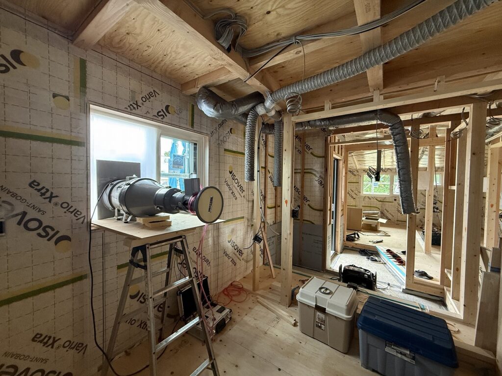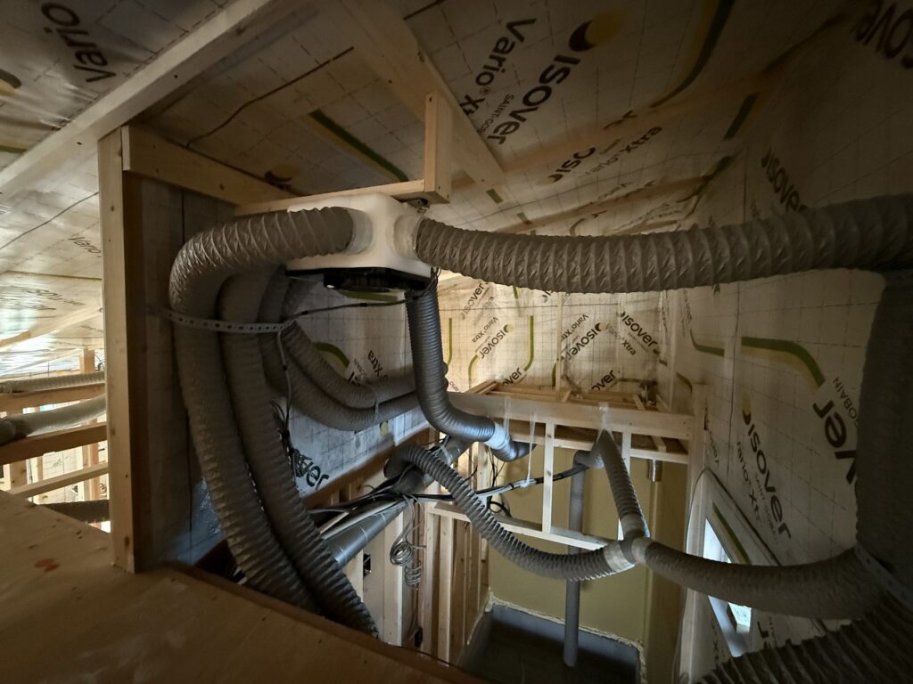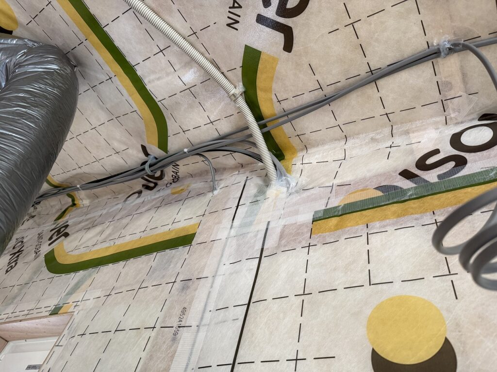 よって私たちは、断熱・気密工事が終わり、貫通部の処理もしてこれ以上穴をあけることがない状態で気密測定をします。