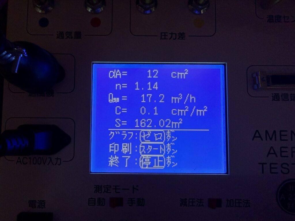 気密測定器も小口径の高気密の建物が測りやすい整流筒を使用しましたが、エラーが何度かでました。