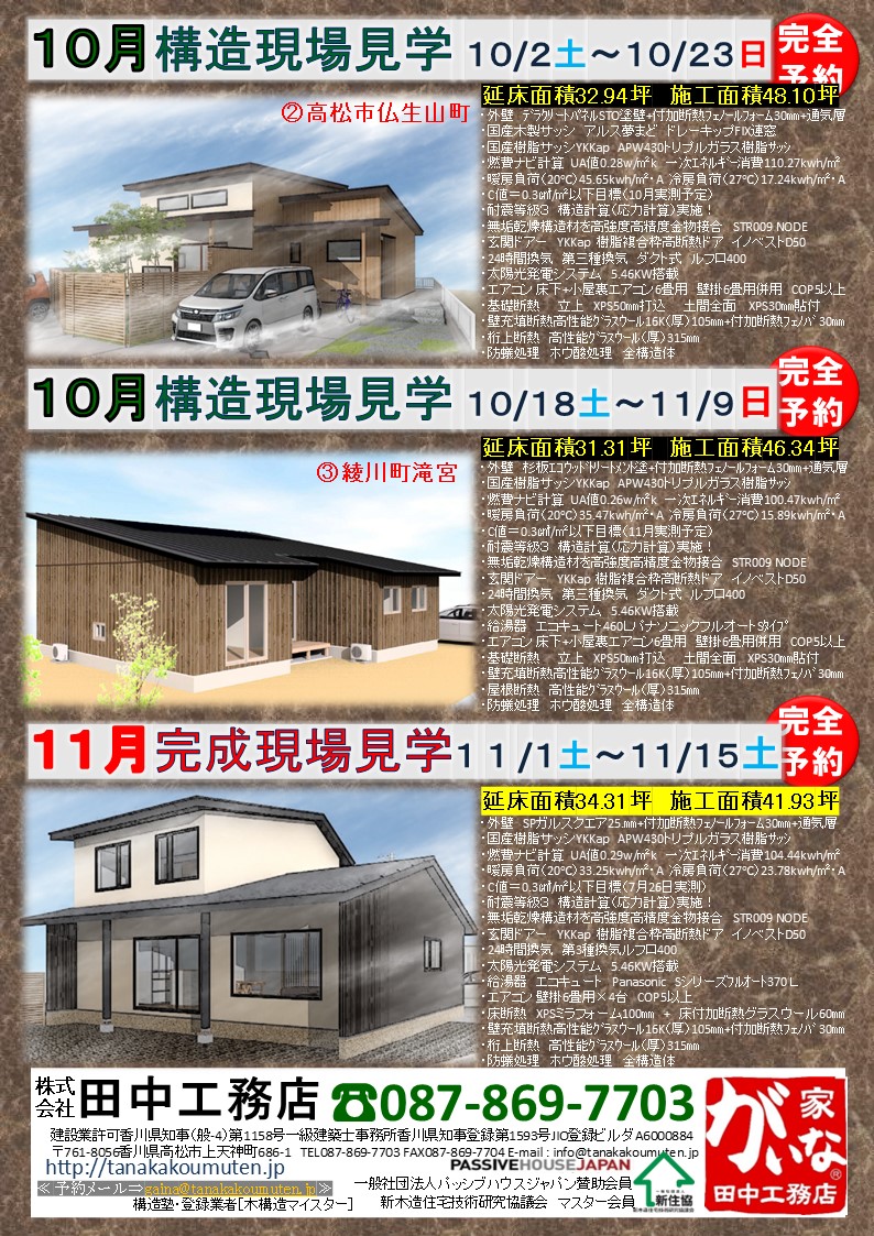 10月は高松市と綾川町で上棟します。