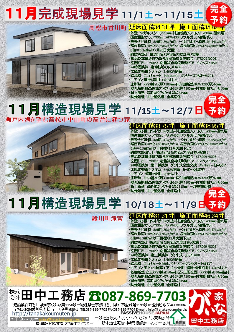 滝宮は基礎断熱、高松市は床断熱の現場です。
